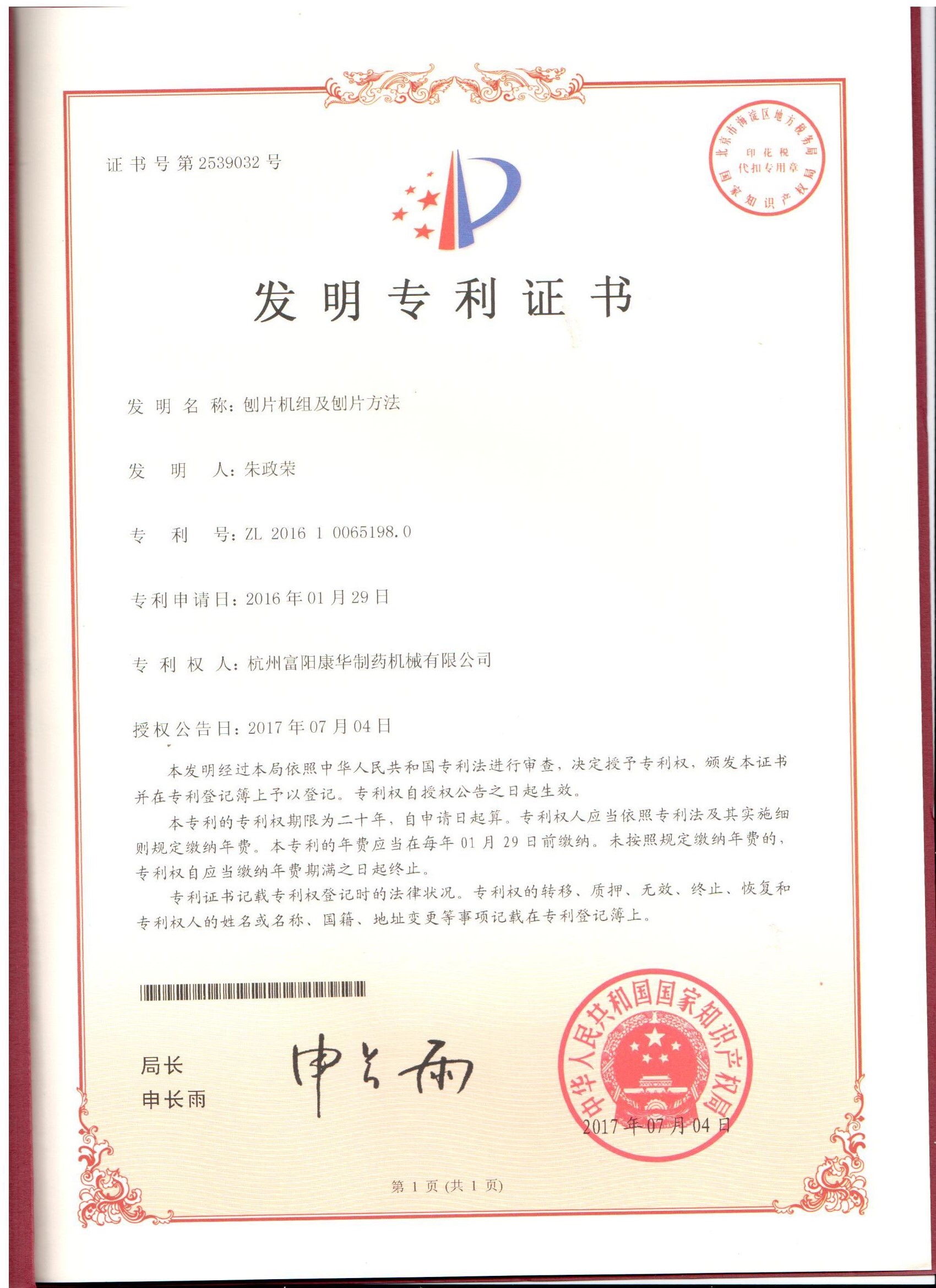 • 喜報!祝賀我司又獲得一項國家發明專利授權...